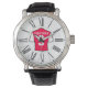 Fußball-Shirt mit rotem und weißem Shirt. Geben Sie den Namen und die Nummer Ihrer Wahl ein. Die Uhr hat römische Ziffern.