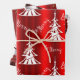 Dieses Weihnachtsgeschenkpapier-Set zeigt drei verschiedene rote Muster für Ihre Weihnachtsgeschenkverpackung: ein modernes Weihnachtsbaummuster mit dem Text 'Be Merry', das überall verteilt ist; das zweite Blatt hat ein niedliches und skurriles Muster von kleinen Schneemännern, die in roten Westen und Top-Hüten gekleidet sind, und das dritte Blatt hat ein sehr elegantes, luxuriöses Weihnachtsmuster von goldenen Weihnachtsschneeflocken (oder Sternen) roter Hintergrund.