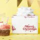 Weißer Hintergrund und roter Text. Text: Frohe Weihnachten und Handmade mit Liebe mit einem Retro-Schriftart im Stil der 70er Jahre.