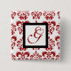 ROTES WEISSES DAMASK SCHWARZES SQUARE-MONOGRAMM BUTTON