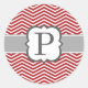 Rotes weißes Monogramm Buchstabe P Zickzack Runder Aufkleber