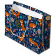 Niedliche rote Füchse mit Blume und Vögeln in einem nahtlosen Muster über blauem Hintergrund.