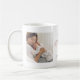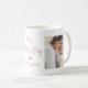 Diese hübsche Mutter-Tag-Foto-Tasse zeigt zum ersten Mal einen schlichten, weißen Hintergrund mit Imitaten Rose Gold moderne Schrift Typografie, die "Erster Muttertag" sagt. Fügen Sie zwei Fotos von ihr und das Kind, mit Raum, um mit Namen und Jahr personalisieren.