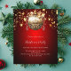 Eine Einladung für ein Weihnachtsfest. Ein roter Farbverlauf. Die Einrichtung ist mit einem großen goldfarbenen Vintagen, goldenen Sternenhimmel geschmückt. Personalisieren und fügen Sie die Details hinzu. Weißer Text. 1 Blatt = 1 Einladung mit Druckkante bis Kante.