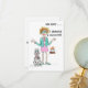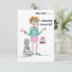 Wie kann es sein?! 50 schon? Unsere Rothaarige Lady hat Mühe, sich mit der Realität ihrer Jahre auseinanderzusetzen. Sogar ihr Poodle scheint von den Nachrichten schockiert. Ihr grüner Jacken und ihre Schuhe, rosa Rock und Schmuck sagen uns, dass sie auf dem Weg zu einer Geburtstagsparty ist, wo ein Kuchen mit einem Kerzenfeuer erwartet sie. Vielleicht hast du einen Freund, der beim Öffnen dieser Karte zum Lachen kommt.