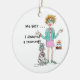 Wie kann es sein?! 50 schon? Unsere Rothaarige Lady hat Mühe, sich mit der Realität ihrer Jahre auseinanderzusetzen. Sogar ihr Poodle scheint von den Nachrichten schockiert. Ihr grüner Jacken und ihre Schuhe, rosa Rock und Schmuck sagen uns, dass sie auf dem Weg zu einer Geburtstagsparty ist, wo ein Kuchen mit einem Kerzenfeuer erwartet sie. Vielleicht haben Sie eine Freundin, die ein Lachen, wenn Sie ihr dieses Ornament Happy Birthday Pam Elifritz geben wird
