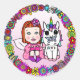 Rothaarige Fairy und Regenbogen Einhorn und Schmetterling rosa und lila Aufkleber.