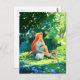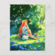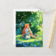 Rothaarige Mädchen mit weißer Katze Postkarte