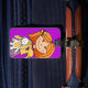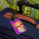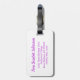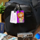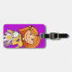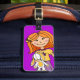 Niedliches Gepäckanhänger ideal für Kinder. Dieses Namensschild hilft Ihnen, Ihr Gepäck zu finden. Personalisieren Sie mit Ihrem Namen und Ihrer Adresse auf der Rückseite. Nützliche, lila Gepäckmarke mit einem roten Haarmädchen, das ihr kuscheliges, ausgestopftes Hasen hält. Grafische Kunstwerke und Design von Sarah Trett.