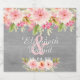 Ein rustikales Weinflaschenlabel für eine Hochzeit oder Hochzeit. Mit zeitgenössischen rosa, pfirsichfarbenen und korallenfarbenen Dahlia-Blume. Eine rustikal graue Holzwand als Hintergrund. Vorlagen für Namen und Datum. Die Namen werden mit einem weißen handgeschriebenen Stilskript geschrieben.