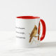 Dieser Weihnachts-Rotkardinal-Becher zeigt eine digitale Aquarell-Illustustration. Das Kunstwerk zeigt Kardinale, die während der Wintersaison auf einem Ast sitzen, ergänzt durch rote Beeren. Eine anpassbare Grußoption ermöglicht einen persönlichen Ausdruck. Dieser rote und weiße Zweifarben-Becher dient als einfühlsames Geschenk für jeden Vogelliebhaber. Das Kunstwerk wurde von Susang6 mit einem KI-Tool entworfen.