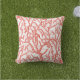 Das farbenfrohe Kissen an der Küste, das durch die verflochtenen, roten Korallenäste auf weißem Hintergrund besticht, verleiht Ihrem sommerlichen Outdoor-Dekor eine farbenfrohe Note.
