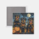 Entfesseln Sie den unheimlichen Geist mit diesem unheimlichen Halloween-Design, das eine Hundepackung unter einem dunklen, mondbeleuchteten Himmel bietet, umgeben von fliegenden Fledermäusen und glühenden Kürbissen. Ideal für diejenigen, die mit ihren wütenden Freunden eine Touch voller Furcht Liebe haben!
