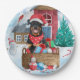 Rottweiler Hund im Schnee Weihnachtshaus Pappteller