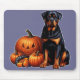 Rottweiler Hund von Halloween Pumpkins sitzend Mousepad