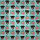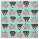Rottweiler-Hunde, Minze und rosa Blüten Stoff