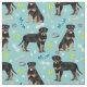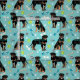 Rottweiler Hunde und Hundespielzeug hellblau Stoff