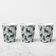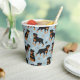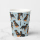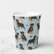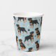 Niedliche Rottweiler-Hunde sitzen und stehen mit schwarzen und bräunlichen Mänteln mit verstreuten Hundeknochen und Pfotenmustern.