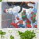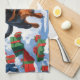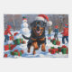 Rottweiler läuft im Schnee mit Weihnachtshut Geschirrtuch