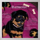 Poster der digitalen Kunstmalerei von Rottweiler mit Rottweiler Info einschließlich Geschichte, Eigenschaften und Größe