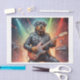 Rottweiler spielt Gitarre auf Bühne - Seidenpapier