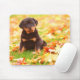 Rottweiler Welpe sitzt im Herbst Leaves Mousepad