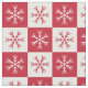 Rot-weiße Schneeflocken wechseln sich auf karierten weißen und roten Plätzen ab, um ein stilvolles geometrisches Muster zu schaffen, perfekt für Weihnachten oder Winter. Der Stoff ist mit Armbanduhr, Fettviertel und mit der Werft auf 7 Werkstofftypen in der Seitenleiste erhältlich.