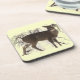 Dieses Set Korken-Untersetzer kennzeichnet ein empfindliches Braun weiß-angebundenes Rotwild, das durch das schneebedeckte Winterholz sich bewegt. Sie hat ihren Kopf gestoppt und gedreht, weil sie Geräusche hörte. Ihre großen Ohren sind wachsam. Das Gesicht hat weiße Markierungen um die Augen und die Nase.