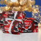 Ein eines netten lustigen Weihnachtsverpackungspapiers mit einem karierten Hintergrund des Holzfällers.