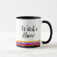 Cartoon Hexe, Schwarze Katze und Besen Hexe's Brew Coffee Tasse. Ideal für Halloween Gefallen oder Geschenke.
