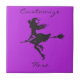 Silhouette einer niedlichen Hexe, die auf ihrem Besen sitzt, personalisieren Sie, indem Sie Ihren Namen auf einer beliebigen Hintergrundfarbe ändern