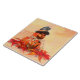Die quadratische Keramik mit dem Bild eines doppelten Halloween-Jack-oder-Laternen mit einem Hexenhut auf einem Bett aus roten und goldenen Herbstblättern. Orangefarbener und gelber Grunge Hintergrund. Siehe dazu passende Süßkarton, Tasse, Melaminplatte, Papierplatte und Untersetzer. Die gesamte Halloween-Kollektion unter der ZUHAUSE-Kategorie im HOLIDAYS-Bereich.