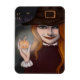 Eine schöne Hexe steht am Ende ihrer Einfahrt und beobachtet die glücklichen Kinder beim Trick oder bei der Behandlung in der Nachbarschaft. Sie hält ihren kleinen Jack O' Lantern in der Hand, um sie vor hinterhältigen Geistern behalten!