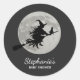 Halloween Hexe fliegt über eine Vollmondbabwdusche Klassischer Rundaufkleber