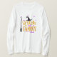 Dieses lustige Halloween-Shirt hat einen Hexenhut und Besen und es sagt Hexe und Berühmt in orange und lila.