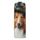 Rough Collie Dog in St. Patrick's Day Dress Thermosbecher