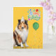 Rough Collie Dog Party Hat Yellow Birthday Karte