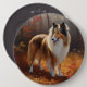 Rough Collie im Herbst Leaves Fall Inspiriert Button