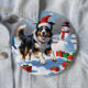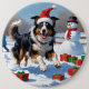 Rough Collie läuft im Schnee mit Weihnachtshut Button