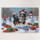 Rough Collie läuft im Schnee mit Weihnachtshut Puzzle
