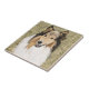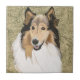 Diese Keramik-Kachel zeigt mein Portrait von einem wunderschönen langen Haar, Rough Collie, gegen einen braunen Blumendruck. Ein hübsches Geschenk.