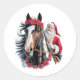 Bring a touch of horsey charm to your Christmas gifts and mailing with this beautifully illustrated Christmas sticker. Featuring a Christmas scene of Santa Claus riding a striking paint horse, this unique design blends classic Christmas magic with a touch of country flair.