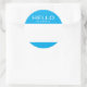 Rundkreisaufkleber mit der traditionellen Formulierung "Hallo mein Name ist" auf blau. Schreiben Sie auf dem matten Finish-Aufkleber Namen.