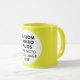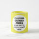 Round YELLOW siongle image frame custom Combo Mug for photo or logo, 11 oz., 3.2" diameter x 3.8" high, with YELLOW background single image frame (one central customizable design area) providing maximum coverage of the mug in YELLOW. See store for more templated font options. The background color has been chosen to closely resemble the combo mug inside and handle color but may not match exactly, due to the difference between printing and enamel tones.