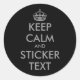 Round KeepCalm Aufkleber in grau | personalisierbar. Anpassbare Keepcalm Vorlage mit benutzerdefinierter Hintergrundfarbe und Text. Vintages Keepcalmandryon Thema. Erstellen Sie Ihre eigene behalten ruhige Parodie.