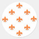 Rundaufkleber in zwei Größen, mit einem Lilie Muster-Design. Dieser hier ist orange und Sie können die Hintergrundfarbe an alles anpassen, was Ihnen gefällt. Die Fleur-de-lis ist eine stilisierte Lilie (auf Französisch, Fleur bedeutet Blume, und Lilie bedeutet Lilie) oder Iris, die als dekoratives Design oder Symbol verwendet wird. Es ist ein Symbol für alles, was Frankreich und Quebec, New Orleans und viele andere Orte sind.