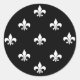 Rundaufkleber in zwei Größen, mit einem großen Lilie-Design. Dieser hier ist weiß, und wir haben einen schwarzen Hintergrund hinzugefügt, aber Sie können ihn leicht in eine beliebige Farbe ändern. Die Fleur-de-lis ist eine stilisierte Lilie (auf Französisch, Fleur bedeutet Blume, und Lilie bedeutet Lilie) oder Iris, die als dekoratives Design oder Symbol verwendet wird. Es ist ein Symbol für alles, was Frankreich und Quebec, New Orleans und viele andere Orte sind.