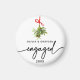 Celebrate your love story with this elegant keepsake engagement magnet. Featuring a round design with modern script lettering, it beautifully displays both names, a delicate hanging mistletoe flourish, and the engagement year. Perfect for commemorating the special moment you said “yes,” this ornament makes a timeless addition to your holiday tree or a thoughtful gift for newly engaged couples. Always in your hearts as it can remain on your refrigerator as your loving commitment to each other.