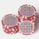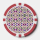Round poker chip with a floral pattern on both sides. The design features purple and pink flowers with green leaves on a beige background, framed by red and white segments.