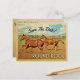 Vintage Round Rock Save the Date Postkarten mit zwei wunderschönen Viertelpferden, die in dieser rustikalen Landschaft Western Ranch zusammen galoppieren. Dieses coole Retro-Design aus der Mitte des Jahrhunderts ist der perfekte Weg, um Gäste zu Ihrer Round Rock Texas Hochzeit in Urlaubsort zu bringen.